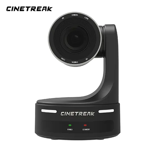 The CineTreak CT-PT20 is a high-definition PTZ camera built for dynamic video production and streaming. Equipped with a 1/2.8" HD CMOS sensor, it captures smooth Full HD 1080p60 video and features auto-tracking, ensuring presenters or speakers remain in frame without manual adjustment. The 20x optical zoom and 16x digital zoom allow for precise close-ups even from long distances, making it suitable for auditoriums, classrooms, studios, and event venues.