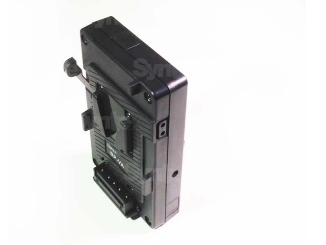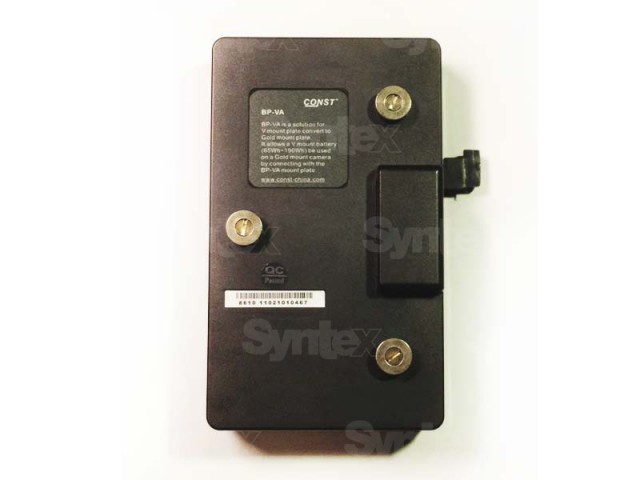 The front of BP-VA is V-mount side, and the reverse of BP-VA is the backside of Gold mount battery. Firstly, Install V-mount battery on the front of BP-VA. Then, connect the reverse of BP-VA to Gold-mount camera directly. Finally, the V-mount battery can power Gold-mount camera successfully.