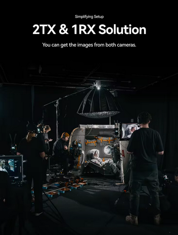 The Hollyland Cosmo C2 2TX 1RX is a powerful wireless video transmission system designed for multi-camera production workflows. It features two transmitters (2TX) and one receiver (1RX), allowing simultaneous video feeds to be sent from two cameras to a single monitoring unit. This setup significantly reduces cabling complexity, enhances synchronization, and streamlines production workflows for filmmakers, broadcasters, and event professionals.