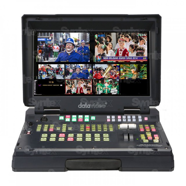 Datavideo HS-2200 is a portable 6-iput video switcher with HD-SDI and HDMI connections and support for up to 1080i resolution. This mobile studio comes equipped with a 17.3“ video monitor, built-in title generator, 8-channel intercom system, PiP, 4 tally lights, wipe effects, lumakey, and more.