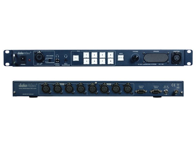 In a production studio, communication between the director, the camera operators and the control room is very important. The Datavideo ITC-100 intercom system is an 8-channel communication system with 8 universal signal lights (4 in the basic set, expandable to 8). The director can select an individual channel or communicate with all channels simultaneously. High quality processing and full duplex communication.