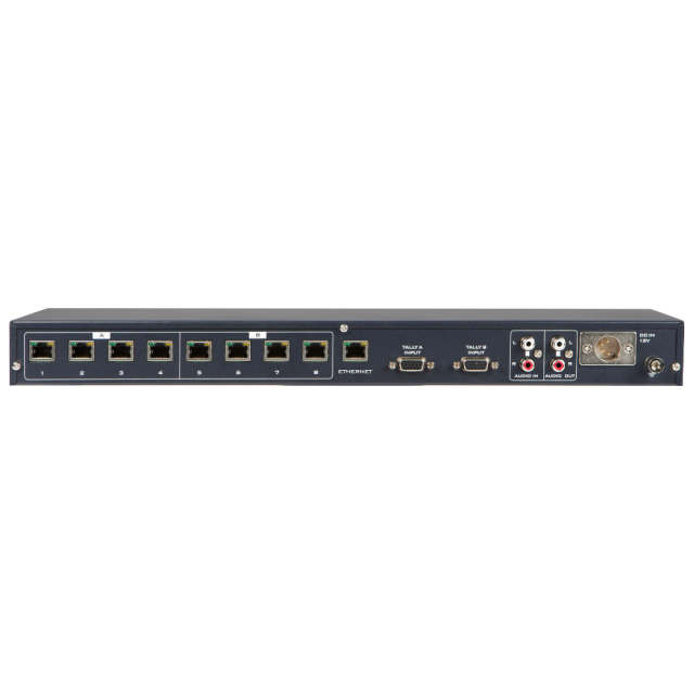 The Datavideo ITC-300 is an 8-channel communication system/intercom with the ability to power up to 8 belt packs over Ethernet. The director can then communicate with each cameraman individually or with several at the same time. The ITC-300 is a 19" product with a height of 1U and thus allows installation in classic rack-mounted configurations.