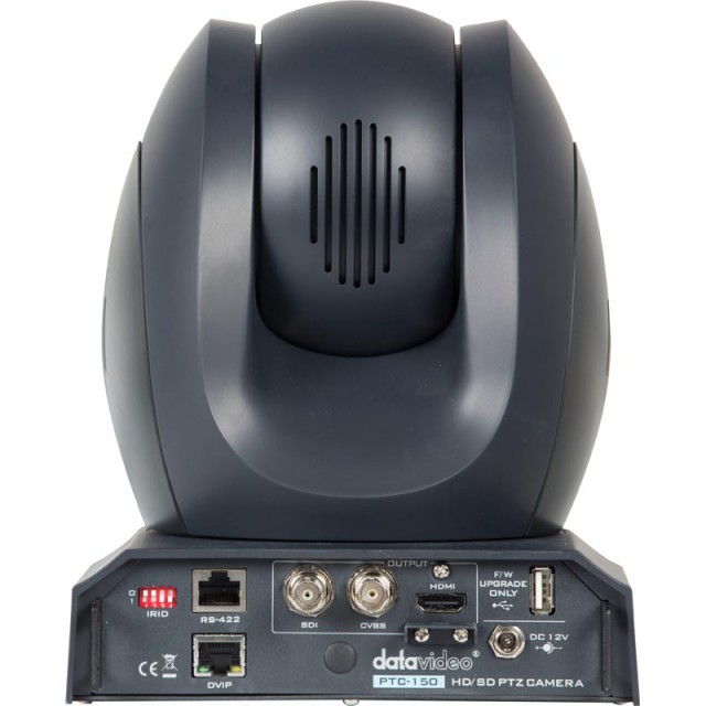 Capture high-resolution video up to 1080p with the white PTC-150 HD/SD PTZ Video Camera from Datavideo. It can be remotely controlled to perform pan, tilt, and zoom operations using the included IR remote control or by using a separately available serial PTZ controller. The camera can be mounted on a wall, ceiling, floor, or tabletop.