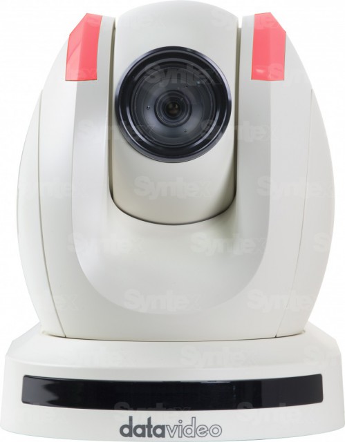 Capture high-resolution video up to 1080p with the white PTC-150 HD/SD PTZ Video Camera from Datavideo. It can be remotely controlled to perform pan, tilt, and zoom operations using the included IR remote control or by using a separately available serial PTZ controller. The camera can be mounted on a wall, ceiling, floor, or tabletop.