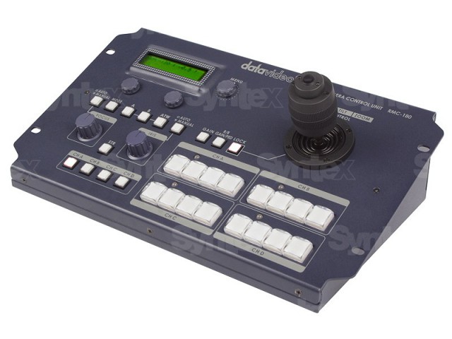The Datavideo RMC-180 can control up to four PTC-100 cameras over traditional network cabling, and includes control of Pan, Tilt and Zoom as well as Iris, Focus, Gain, and other functions.