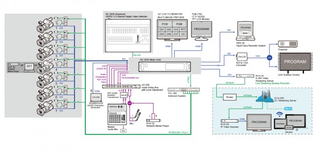 TheDatavideo SE-2850 is a portable SD/HD 8 or 12 channel video overhead, featuring effects, built-in intercom and tally system.