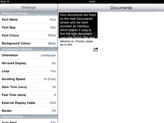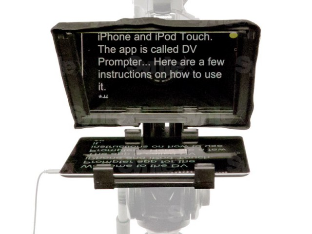 In addition, the DV Prompter software can drive external displays using a standard VGA or Composite video cables available for the Apple iPad™ and iPad2™.