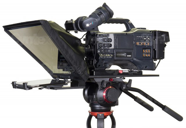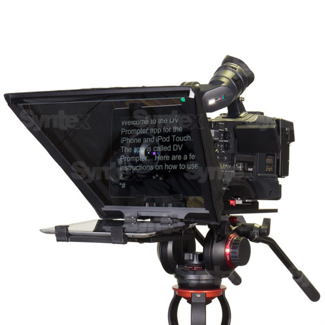 The Teleprompter Package from Datavideo is for use with the iPad & Android tablets and ENG cameras. It includes cloth hood for the camera, glass frame, 60/40 glass sheet, prompter rig, adjustable mounting brackets for the tablet (can fit up to 12.9" iPad Pro), and camera riser.