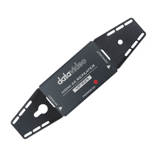 4K HDMI Repeater. VP-929 is able to easily extend any HDMI signal another 10 meters in up to 4K resolution and up to 15 meters in HD resolution. It can be powered by the 5V signal on the HDMI signal to power the first repeater. Second and further repeaters can be powered by 5V USB power or even a USB powerbank! You can easily secure your HDMI cables with regular zip ties using the cable holders on the chassis. VP-929 can alco be cascaded up to 3 times to create a total transmission distance of up to 60m with HD signal. It is best used in situations where the cable cannot be manipulated, e.g. over a ceiling or through a wall.