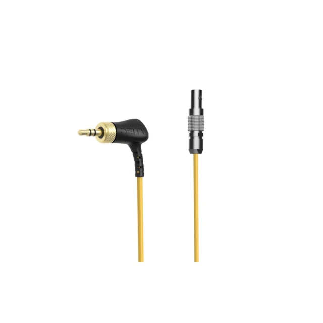 The Deity C16 is an SMPTE timecode cable with a screwable 3.5mm TRS connector on one end and a 5-pin connector on the other end.