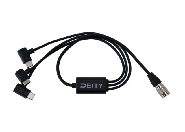 The Deity SPD-HR3U 4-Pin Hirose to Triple USB-C cable allows you to power up to three USB-C devices simultaneously from a single Hirose power source, simplifying power management in professional audio setups.