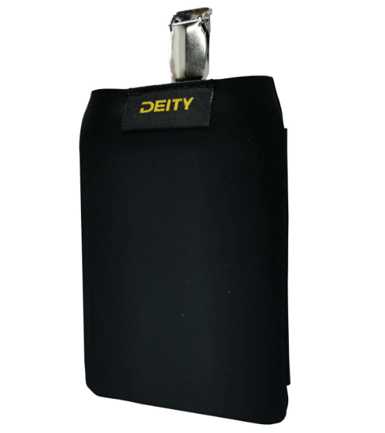The Deity THEOS Pouch Black is a soft, discreet carrying pouch designed for comfortable and secure attachment of the THEOS DBTX transmitter during film, theater, and live productions.