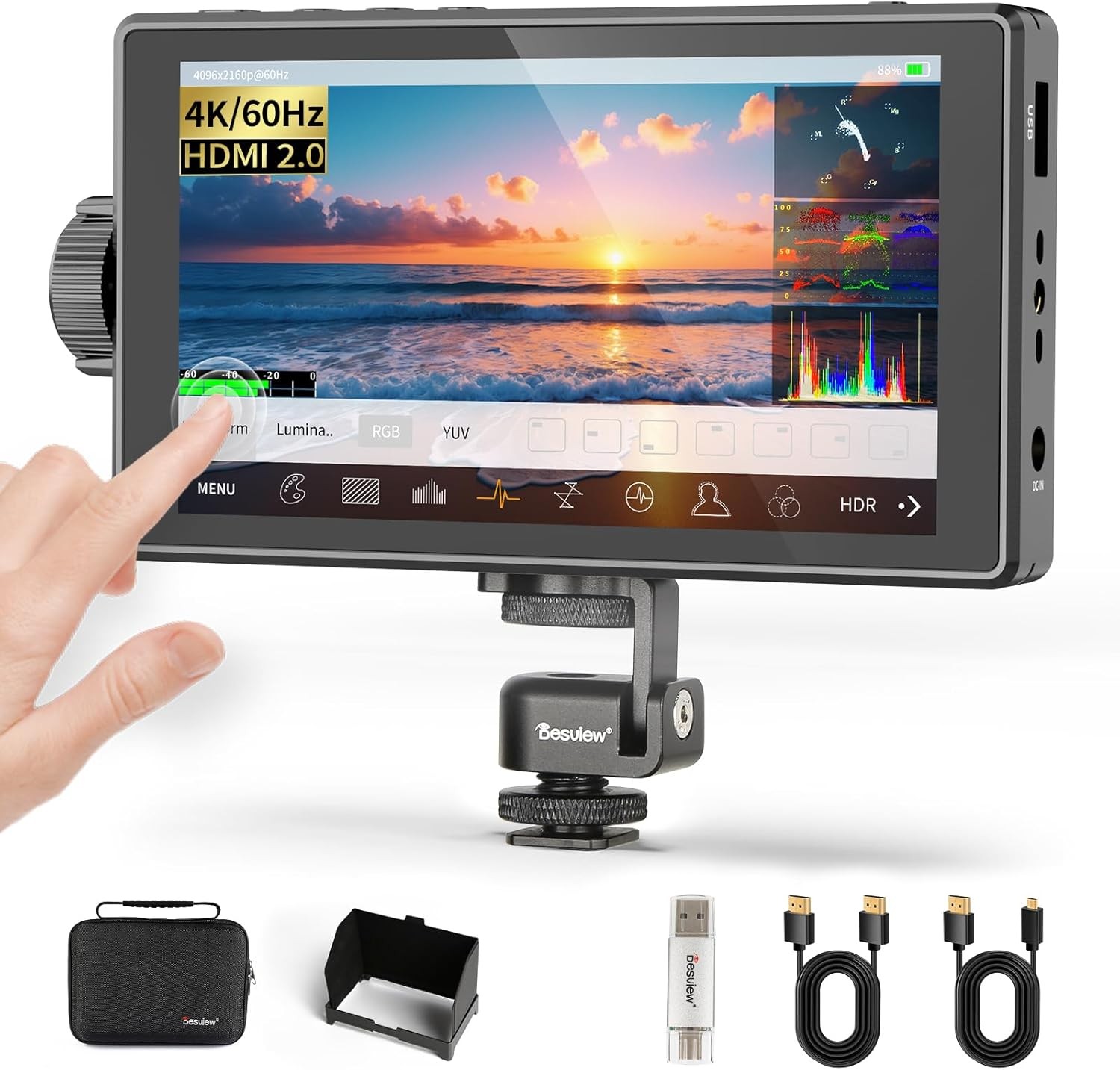 The Desview A5 is a compact 5.5-inch Full HD touchscreen camera monitor featuring a bright IPS display, advanced monitoring tools, and 4K HDMI input/output, making it ideal for filmmakers, content creators, and event videographers who need accurate, portable on-set monitoring.