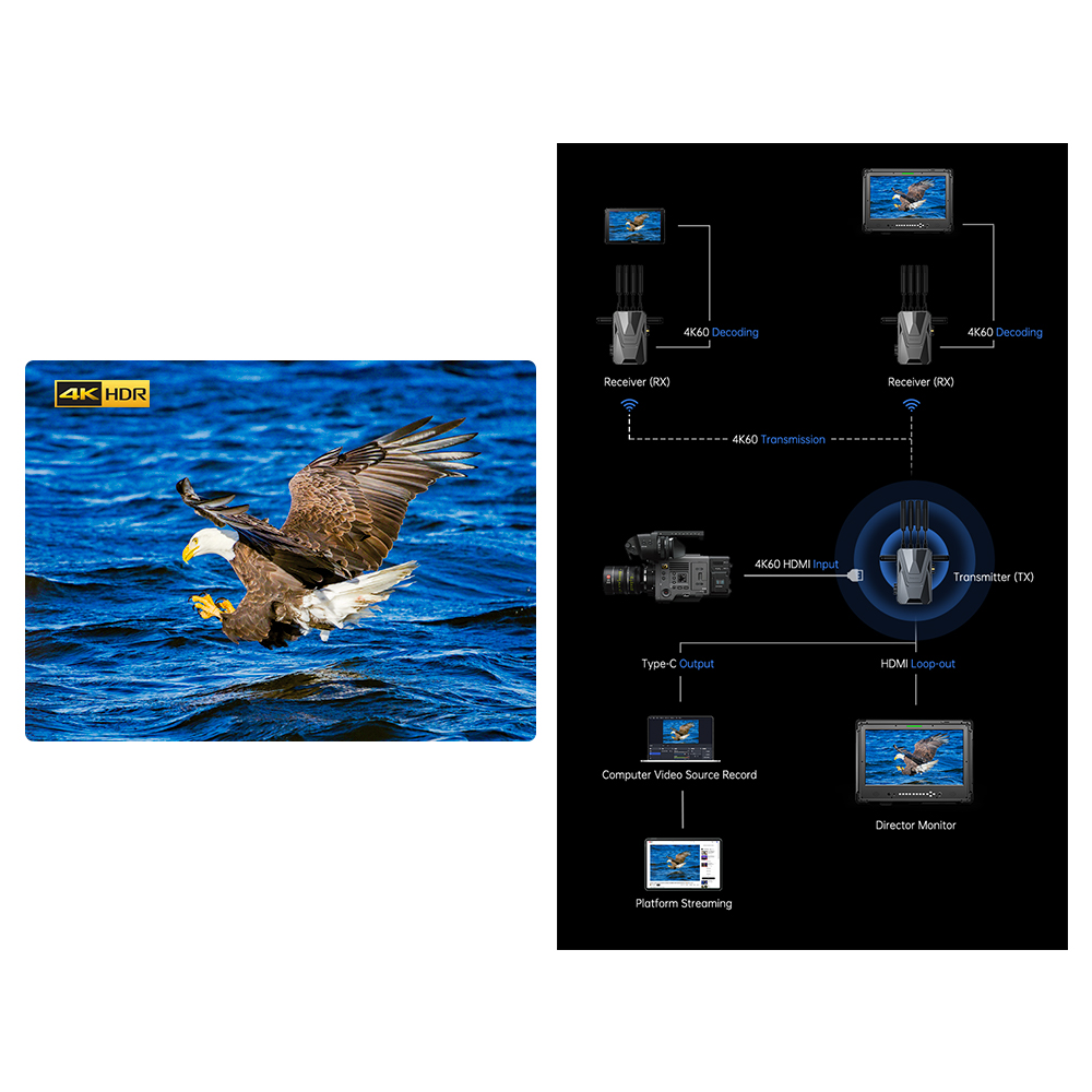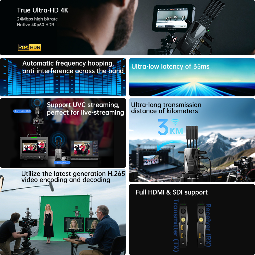 True Ultra-HD 4K Automatic frequency hopping, anti-interference across the band |