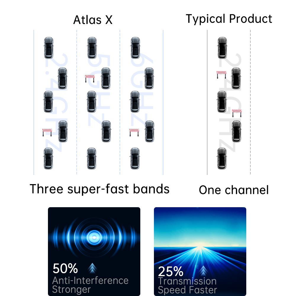 Stable Long-Distance Coverage, Range Up to Kilometers Thanks to triple-band transmission, Atlas X reaches a transmission distance of up to 3km in open, obstacle-free environments. It handles large-scale mobile shootings with strong wall-penetration power, meeting on-set monitoring demands in any complex environments.