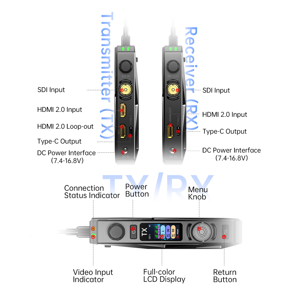 Desview Atlas X 4K TX/RX professional wireless video transmitter and receiver for smooth, long-distance 4K image transmission without delay. Ideal for filmmakers, broadcasters, and live events. Catalog number des-AtlasX4K-TX/RX. Robust construction, easy to use, and reliable performance. Enhance your production with this top-of-the-line wireless solution.