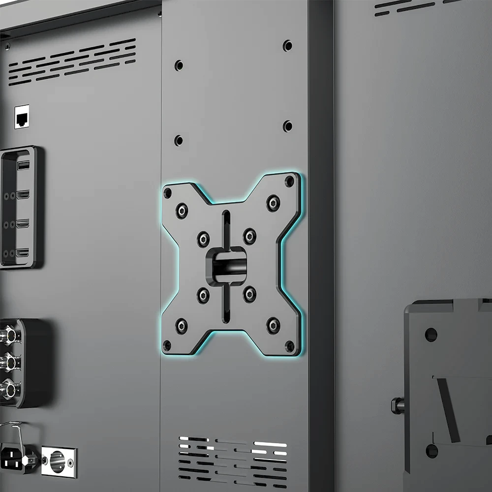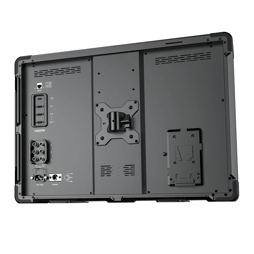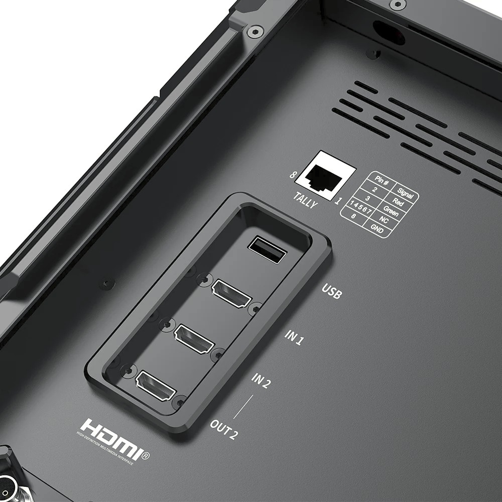 Built for demanding environments, the D21 Pro features a pressure-resistant composite housing capable of withstanding up to 80 kg load, reinforced with military-grade anti-collision corner guards tested for 1.5-meter drops. Multiple 1/4"-20 and 3/8" mounting points and VESA mount compatibility allow seamless integration with light stands, carts, and studio rigs. Power flexibility is ensured through AC power, XLR DC input, or V-mount battery support, making it adaptable to studio, outdoor, or mobile shooting scenarios. A front-facing tri-color tally light (red/green/blue) further enhances its suitability for live production and broadcast environments.