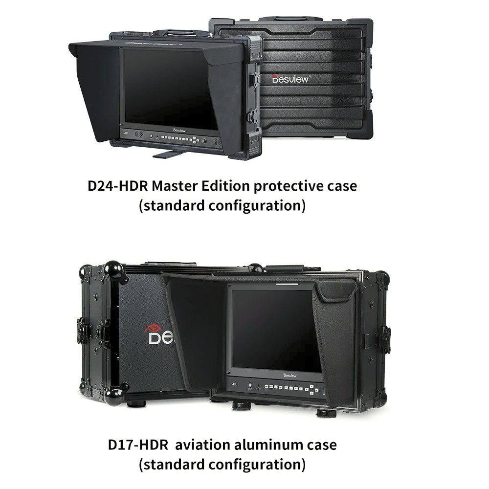 The Desview D24-HDR is a professional 24-inch 4K UHD broadcast monitor featuring HDR support, multi-screen monitoring, HDMI and SDI connectivity, full waveform tools, and tally indicators, designed for demanding broadcast, studio, and live production environments.