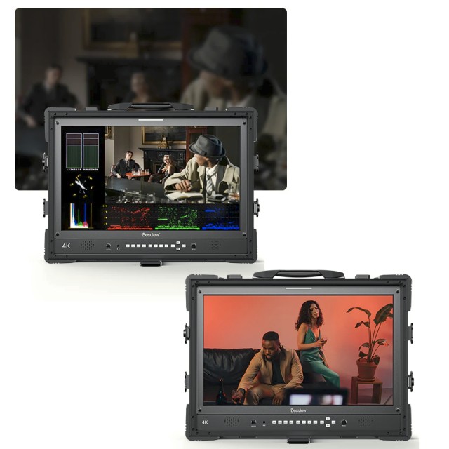 Designed for advanced production setups, the D24-HDR supports multi-screen monitoring with horizontal and vertical display orientations, making it adaptable to various shooting scenarios. It offers three HDMI 2.0 inputs and one HDMI output supporting 4K@60Hz, along with professional SDI input and output for broadcast-grade signal transmission. Built-in full waveform monitoring, histogram, and vectorscope tools allow precise control of exposure, color, and image quality. Equipped with a front tally light system and multiple power supply options—including V-mount battery, AC power, and XLR input—the Desview D24-HDR is a robust solution for directors, engineers, and production teams.