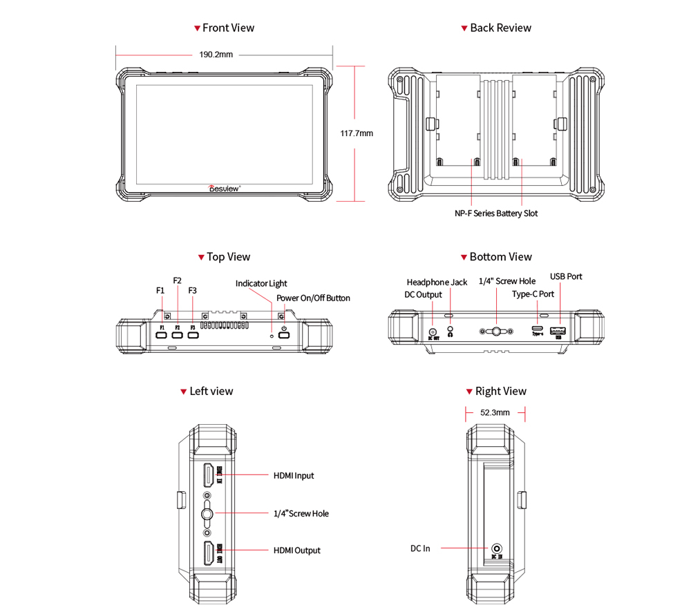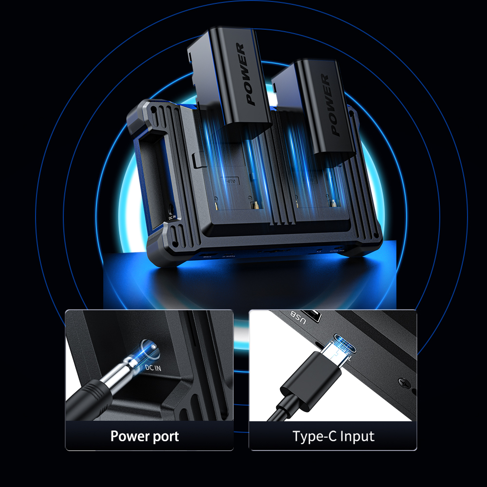 DC IN 7~30V / DC OUT 8V USB Type-C NP-F Series Battery Slot*2 |