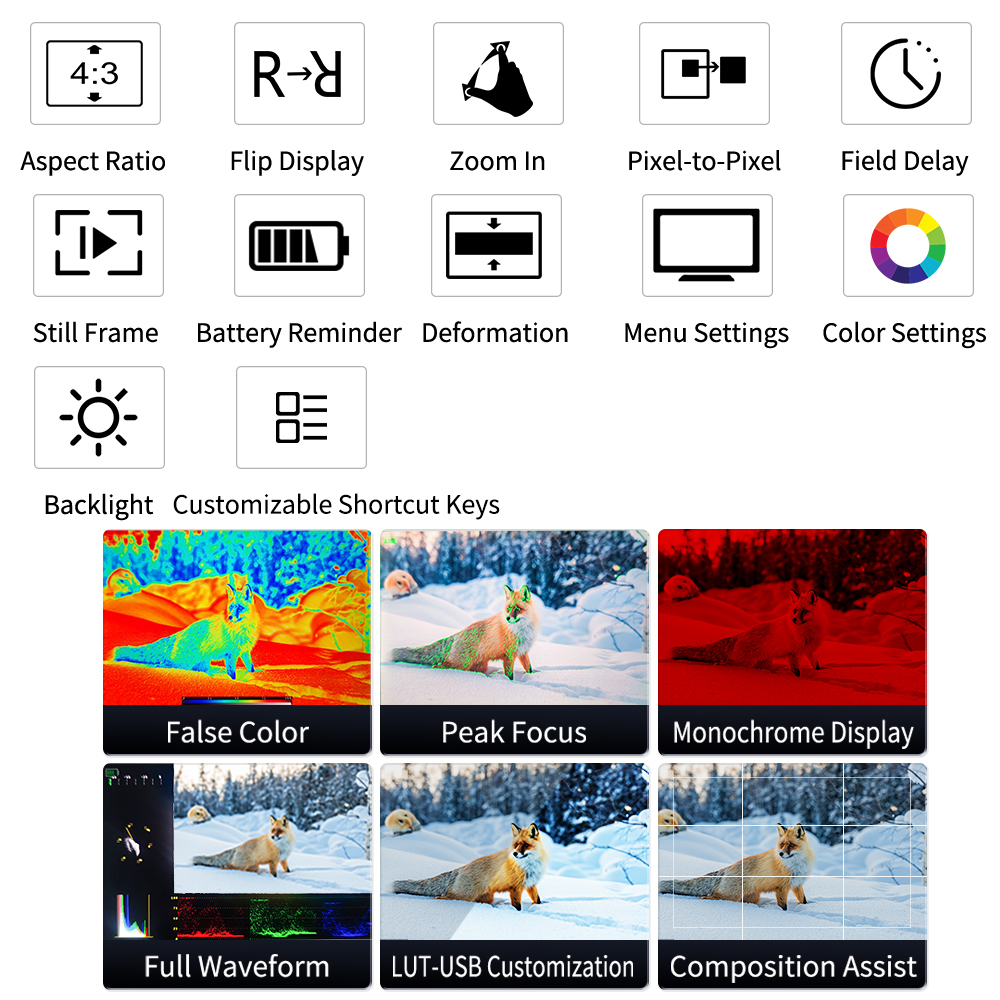 Full Range Of Auxiliary Functions Comes with a range of auxiliary shooting features, such as full waveform, color temperature, peak focusing, false color, deformation function, zebra lines, and still frame, etc. |