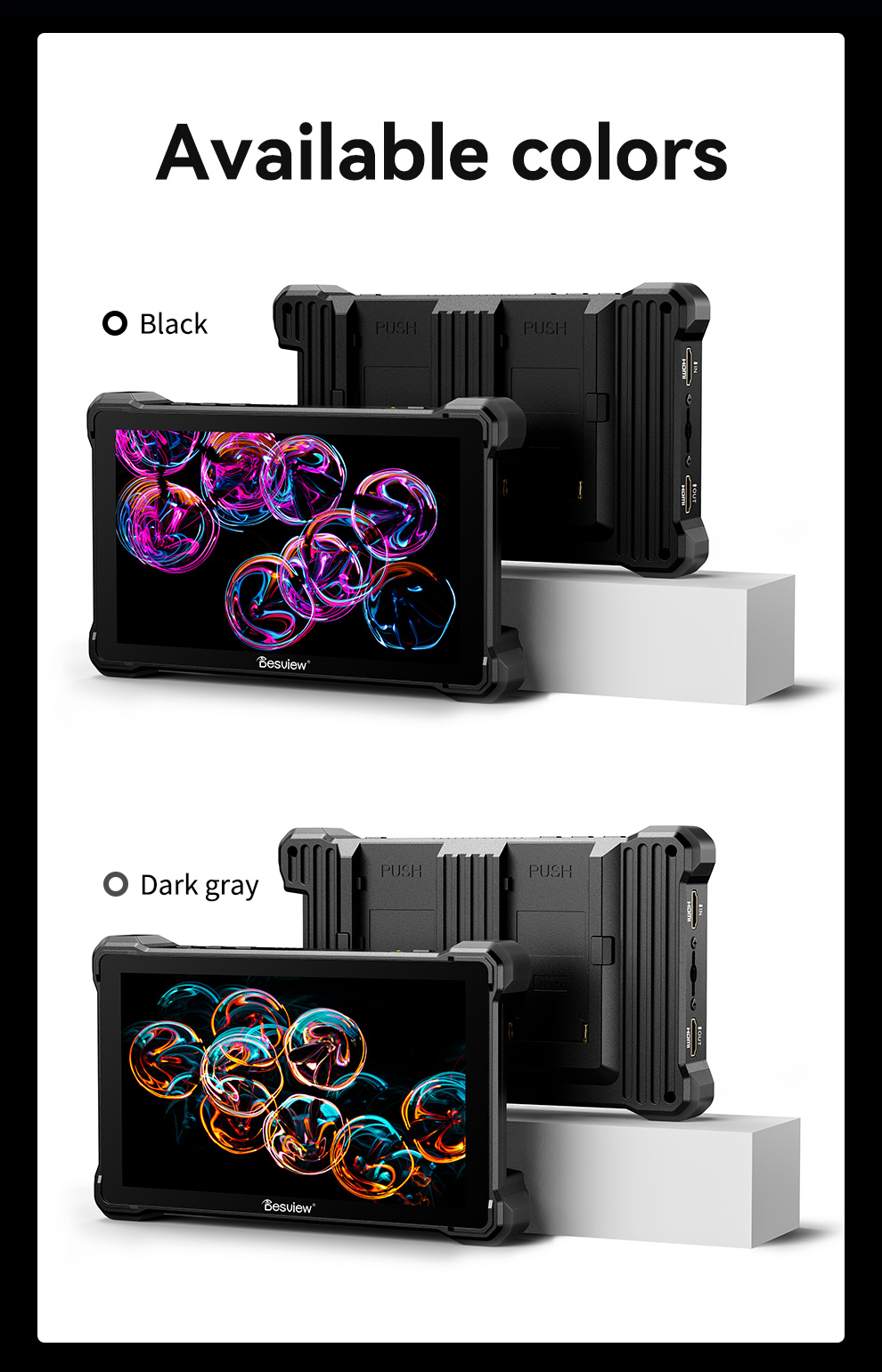 Monitor x 1 A-AHDMI Cable x 1 Micro HDMI Cable x 1 D-Tap Cablex1 Monitor Mount x 1 U Disk x 1 Dust Cloth x 1 User Manual x 1 |