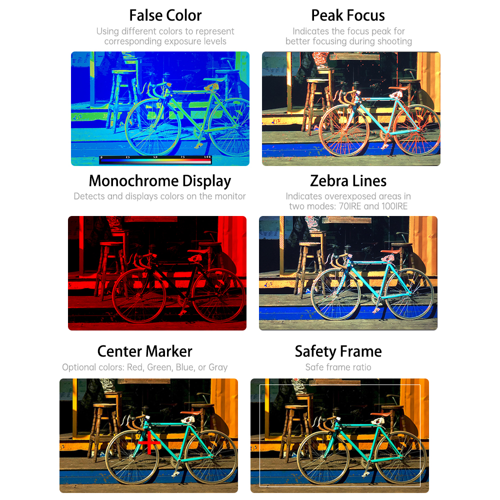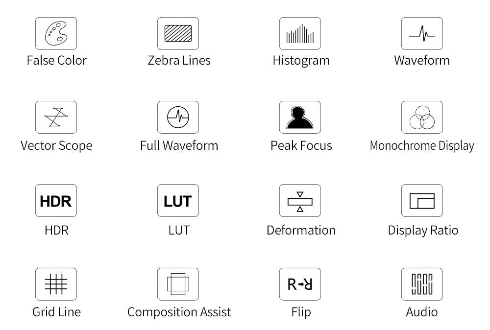 | Professional Assistive Functions Equipped with a complete set of assistive shooting functions, making shooting easier. Includes features such as full waveform, color temperature, peak focus, false color, distortion function, zebra pattern, and still frame, among other professional software functions |
