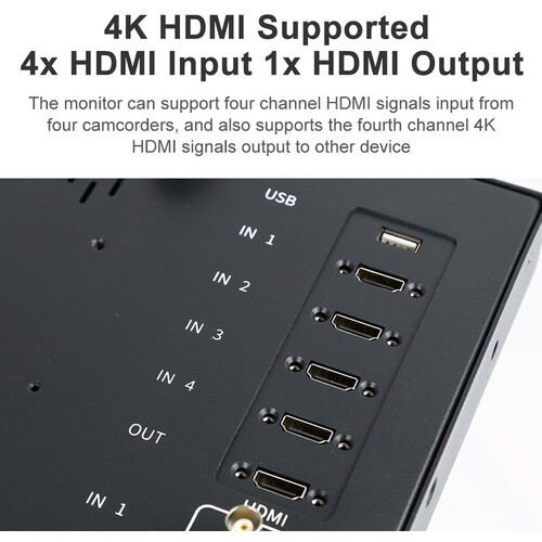 The Desview S14-HDR 14" UHD 4K60 monitor brings professional multiview monitoring to ENG, live broadcast, and mobile production workflows. Its 3840 × 2160 resolution panel with 400 cd/m² brightness and 1000:1 contrast ratio ensures clear, high-fidelity image reproduction, while a 178° wide viewing angle maintains color accuracy across any perspective. Equipped with four HDMI inputs, two SDI inputs, and corresponding outputs, it supports DCI/UHD 4K60 video, 1080p, 1080i, 720p, and SD formats. The monitor features advanced broadcast tools such as gamma selection, false color, monochrome, pixel view, safety markers, aspect ratio overlays, PiP/PbP multiview, and a tally light system controllable via RJ45. Designed for tabletop use, it also includes a 100 × 100 mm VESA mount, V-mount battery plate, and 4-pin XLR DC input, enabling versatile mounting and power options. With stereo speakers and a 3.5mm headphone output, the S14-HDR is a complete on-set monitoring solution for professional production environments.
