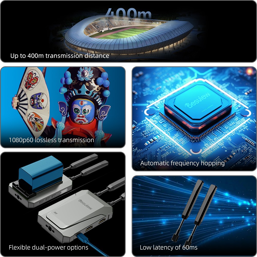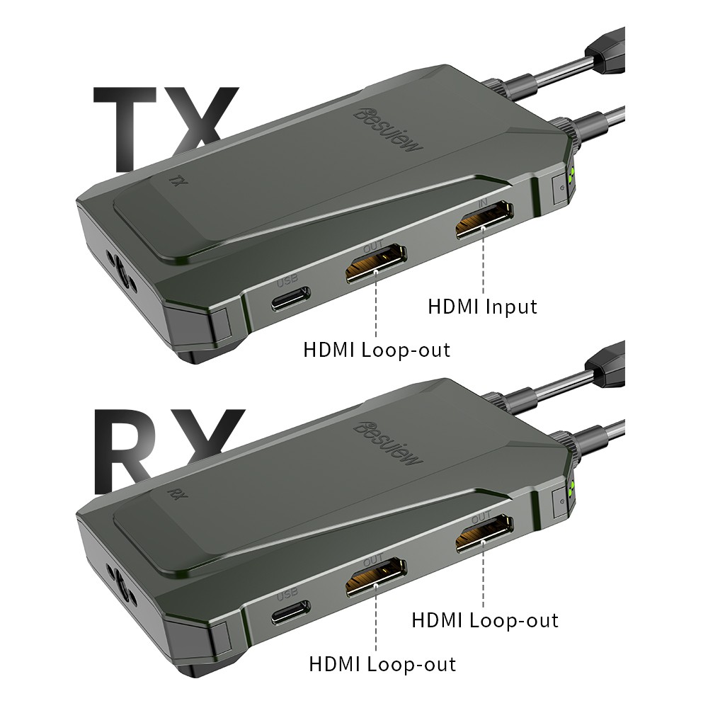 All-in-One Ports, Quick Setup Plug-and-Play Signal Input: Transmitter has HDMI input and HDMI loop-out, let you plug in the camera or mirrorless camera easily and keep a local monitoring for easy framing.