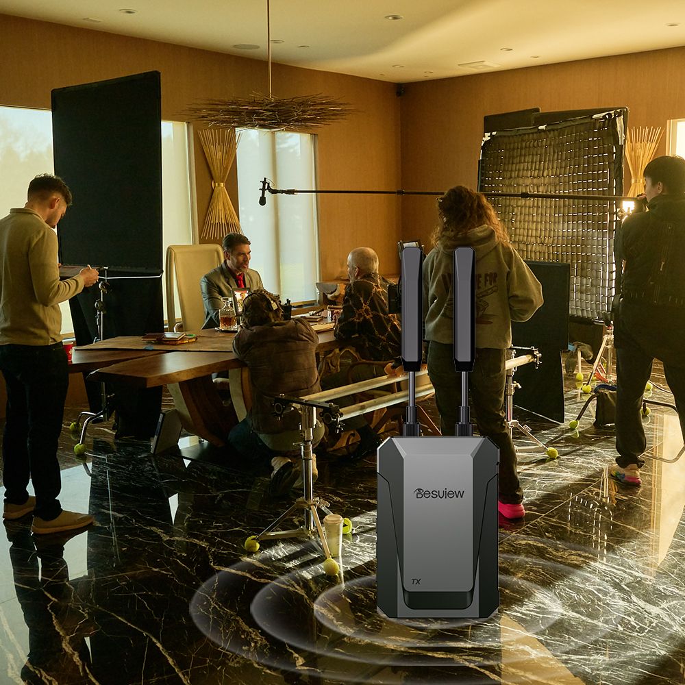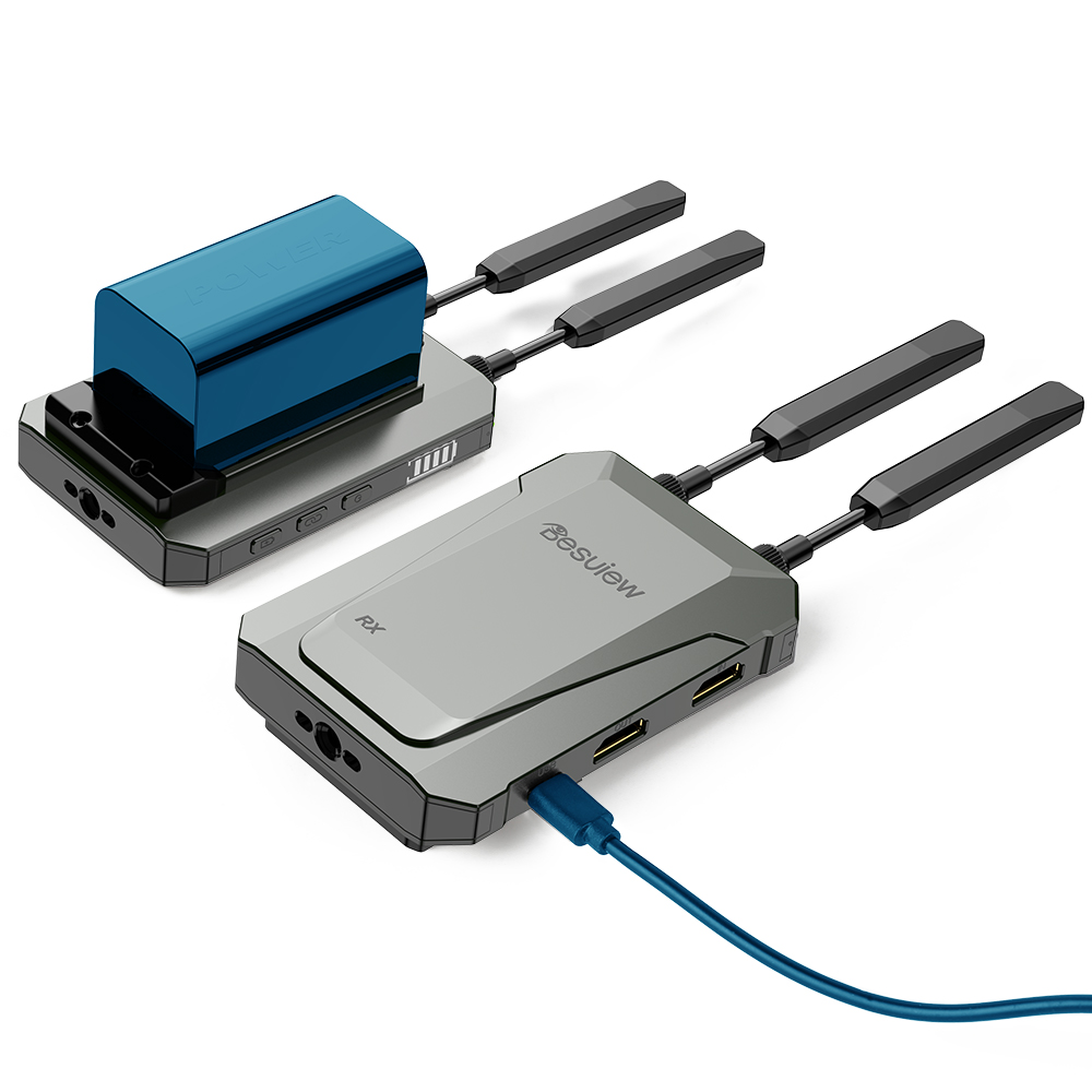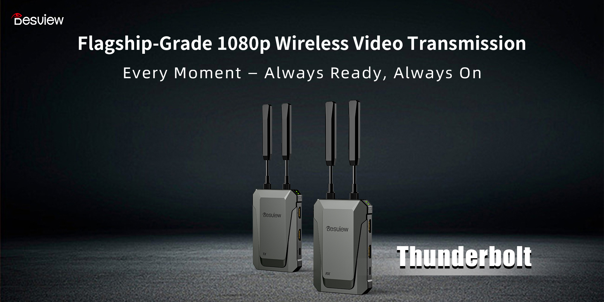 Desview Thunderbolt TXRX wireless video transmitter receiver system for professional video production. Achieve seamless HD wireless transmission for your cameras and monitors with ultra low latency. Featuring robust build quality and reliable performance for studios and live events. Enhance your workflow with this essential piece of filmmaking gear.