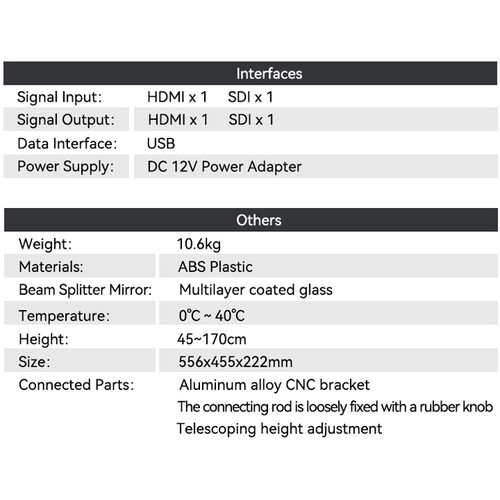 The Desview TP200 is a versatile teleprompter system designed for professional video production, live streaming, and broadcasting. Its 17-inch high-brightness monitor (1000 cd/m²) ensures excellent visibility in both indoor and outdoor settings. The 22-inch reflective mirror glass delivers crisp, clear text, making it easy to read from various distances.