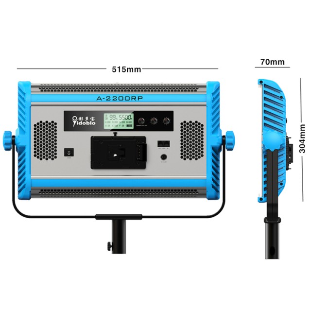 150W SMD LED panel 5500K ±300K, 15000 lm, ≥95RA, beam angle 75°. Manual and remote control possible (remote control not included), DMX protocol support and mobile app control. Power supply 110-220VAC / 14.8V=, power adapter included. Does not include battery (FD-BP130L) or carrying case (sold separately).