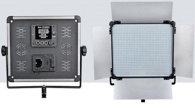 210W Bi-color LED video light, 3200-5500K, 19500 lm, 95 RA, 60° beam angle, DMX 512 protocol support. Battery (not included) or 14.5V= power supply. Includes carrying bag.