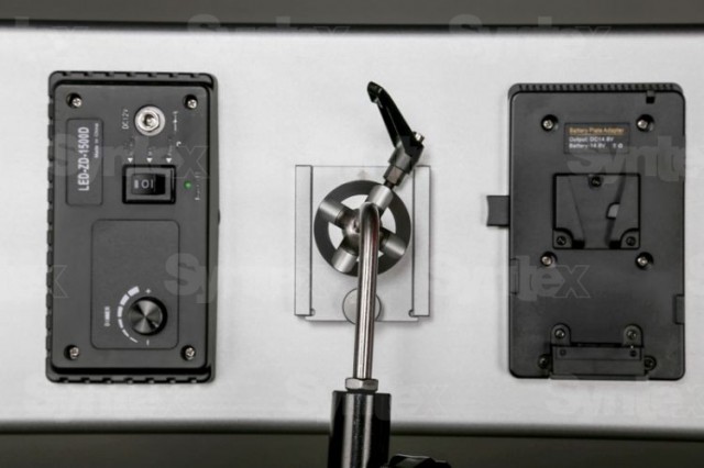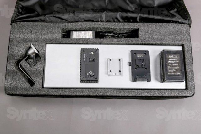 Latour's thin (48mm) LED headlights use efficient, long-life LED elements that produce light intensities of up to 7680 lx (1000S) or 11520 lx (1500S) at a distance of 0.5m; the intensity can be easily adjusted on the back of the unit. Thanks to their high colour rendering index, they produce natural light, and the colour temperature can be adjusted between 3200 and 5600 K. Power is provided by an external adapter or a 14.8V V-Mount battery. The lights have a solid and lightweight (approx. 1.6 kg for the 1000S and 2.2 kg for the 1500S) aluminium body and a mounting element with 360 degree rotation. Flaps for shaping the light are also included!