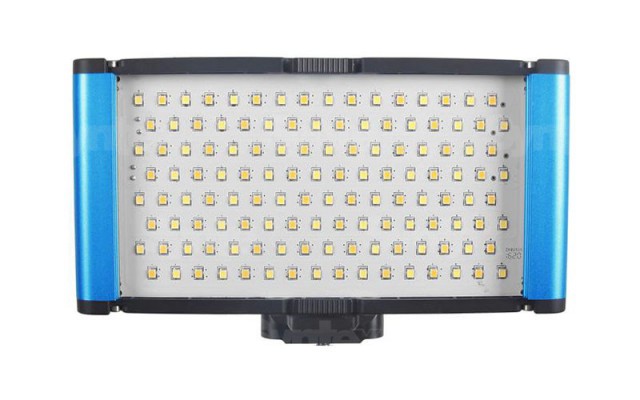Dison's camera LED floodlights use modern, efficient LED elements with an average life of 50,000 hours and are powered by a pair of standard Sony F batteries or an external 12-15 VDC power supply. The highly luminous LED elements produce light intensities of up to 3200 lx (on the 120T) or 4000 lx (160T); intensity and color temperature can be easily adjusted on the back of the unit. The headlamp is built in a solid and very light aluminium alloy chassis with a total weight of approx. 200 g without batteries! This makes the headlamp easy to operate on smaller cameras or DSLR/DSLM cameras to which it attaches using a standard flash socket.