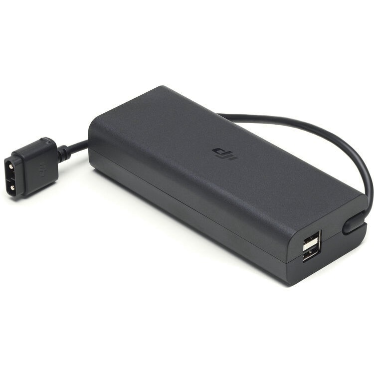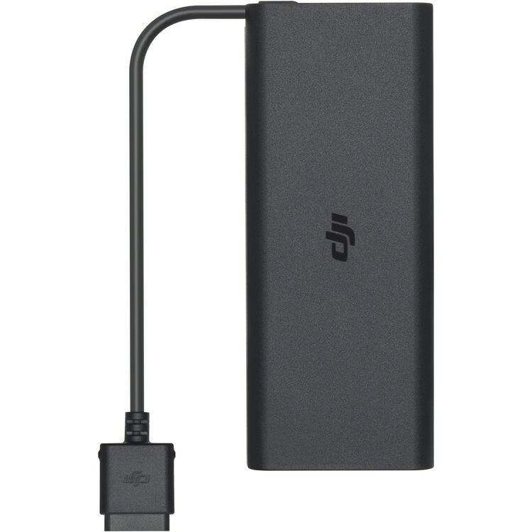 The DJI FPV AC Power Adapter is a versatile charging solution designed to recharge DJI FPV Intelligent Flight Batteries, the FPV remote controller, or FPV goggles, with added USB charging support for mobile devices.