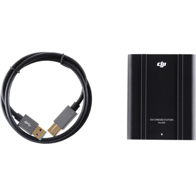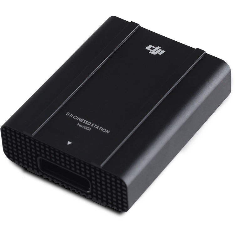 The DJI CINESSD Station (USB 3.0) allows you to quickly offload high-resolution video files from a DJI CINESSD used with the DJI Inspire 2. Simply remove the CINESSD from the aircraft, insert it into the station, and connect the station to your computer using the included USB 3.0 cable. This solution is ideal for handling large 4K and 8K video files during professional post-production workflows.