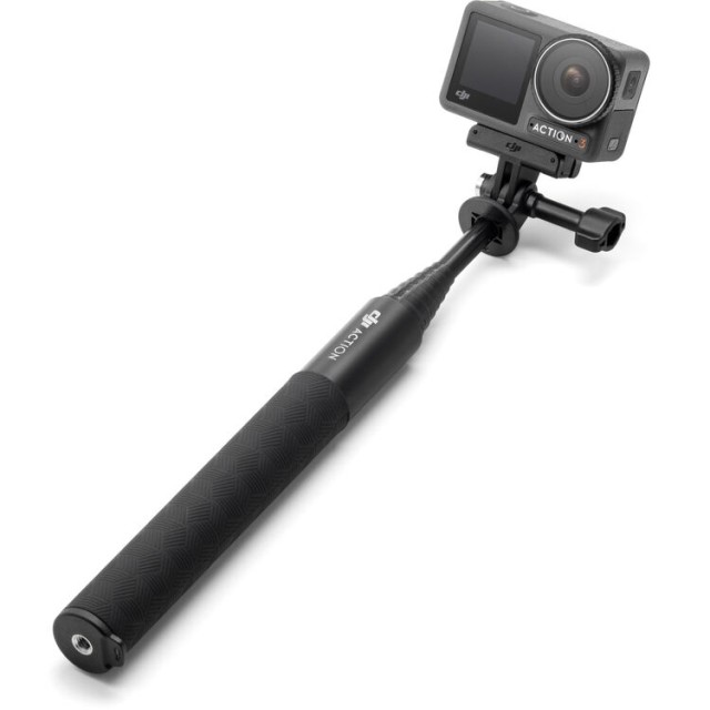 The DJI Osmo Action 3 1.5m Extension Rod Kit lets you expand your shooting possibilities by adding an adjustable extension rod to your Action 3, 4, or 5 Pro camera. The rod extends from 11.8 inches (0.3 m) to a full 4.9 feet (1.5 m), allowing wide-angle, selfie, and low- or high-angle shots with ease. The camera mounts onto the rod via the included vertical quick-release mount, secured with the supplied locking screw for reliable operation. A 1/4"-20 thread at the bottom of the mount provides the option to attach additional accessories or rig it onto other supports. Lightweight, portable, and easy to handle, this extension rod kit is perfect for vloggers, content creators, and action shooters seeking creative flexibility and stable shooting in any scenario.