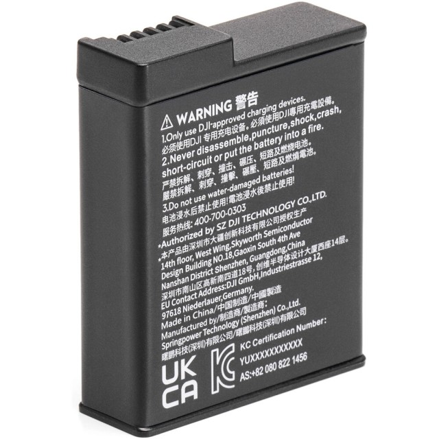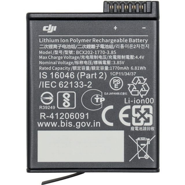 The DJI Osmo Action 3 Extreme Battery is a high-performance power solution designed specifically for DJI Osmo Action 5 Pro, Action 4, and Action 3 cameras. Featuring a 1770mAh lithium-ion polymer (LiPo) capacity and 3.85V output, this battery delivers reliable, long-lasting energy for extended shooting sessions in demanding environments.