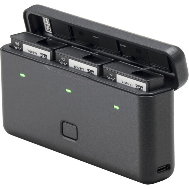 The DJI Osmo Action 3 Multifunctional Battery Case is a versatile accessory designed to keep your Osmo Action camera batteries organized, protected, and charged. The case accommodates up to three Osmo Action 5, 4, or 3 batteries, allowing simultaneous fast charging via its USB-C port (USB power source not included).