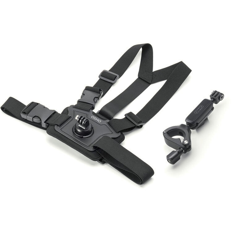 The DJI Osmo Action Biking Accessory Kit is designed to help you capture stable, first-person POV footage while cycling, mountain biking, or trail riding. This versatile kit includes a chest strap mount and a handlebar mount, allowing you to film from chest level or directly from your bike’s handlebars. The adjustable chest strap wraps securely around your chest and shoulders for a comfortable, hands-free fit, while the handlebar mount clamps firmly onto a wide range of handlebar sizes. Both mounts feature 3-prong action camera interfaces with adjustable tilt and 360° rotation, giving you precise control over framing and camera angles. Ideal for capturing action-packed rides, this kit ensures reliable mounting and immersive footage every time.