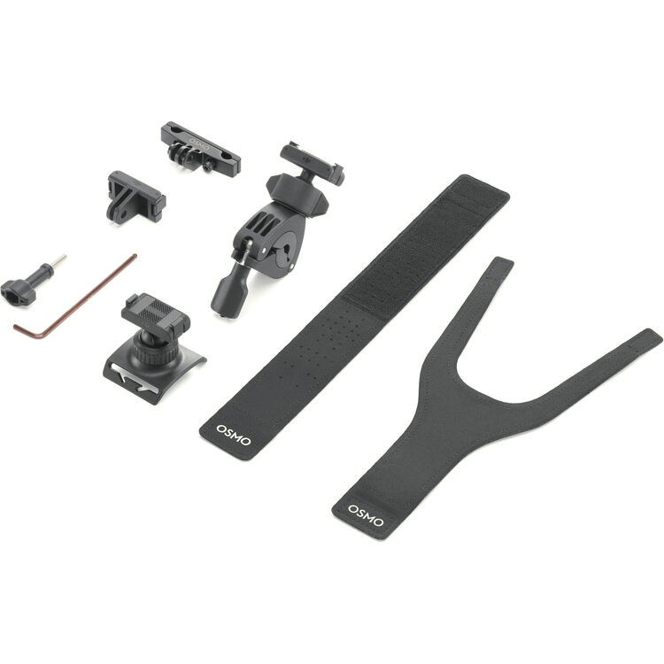 The Osmo Action Road Cycling Accessory Kit from DJI equips you with everything needed to capture stable, creative footage while road cycling, mountain biking, or trail riding. Designed for use with the Osmo Action 3 and Action 4, this kit includes a Bike Seat Rail Mount, Mini Handlebar Mount, and 360° Wrist Strap, along with a Quick Release Adapter Mount and locking screw for fast, secure setup. Each accessory uses a standard 3-prong mount, allowing flexible positioning for front-facing, rear-facing, or POV shots. Built from durable aluminum alloy and designed for active use, this kit gives cyclists multiple mounting options to capture every angle of their ride with confidence.