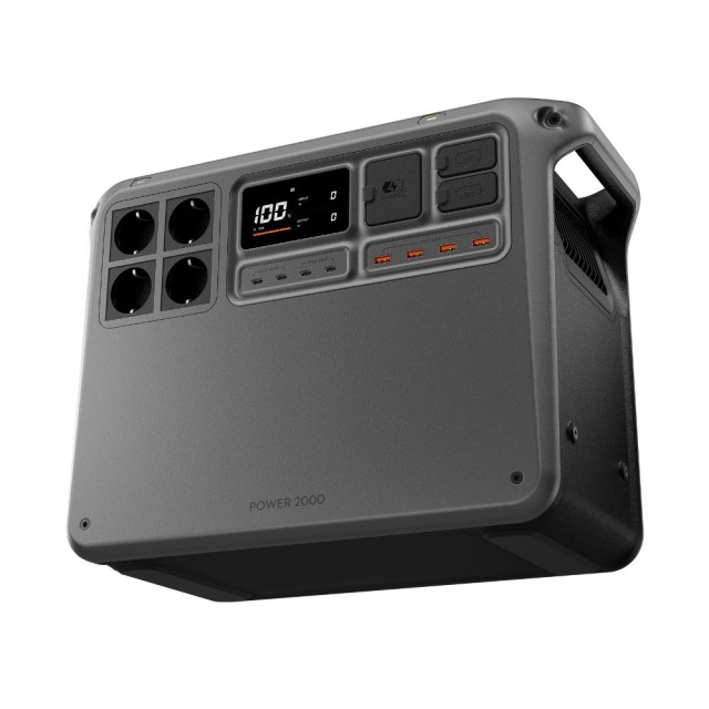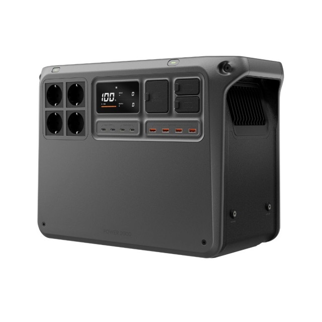 The new DJI Power 2000 portable battery station offers a high capacity of 2048 Wh in a compact design. The 3000 W output power easily powers most home appliances.
