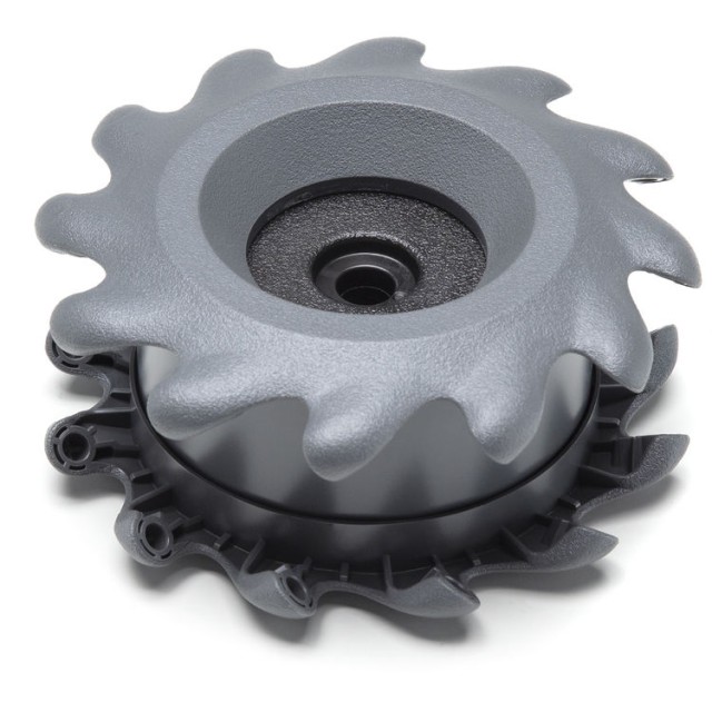 Each wheel is equipped with 12 rollers manufactured using a two-shot injection molding process that combines hard and soft rubber materials. The hard rubber rollers are made from high-strength, impact-resistant, self-lubricating POM, while the soft rubber rollers are made from wear-resistant TPU. This dual-material design ensures an optimal balance of durability, traction, and smooth movement across different surfaces.