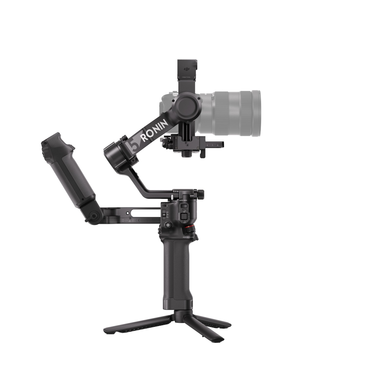 The DJI RS 5 features a touchscreen for object selection, a new tracking module, smooth balancing with rotary selectors, and direct control via anew handle—all complemented by faster charging and longer battery life.