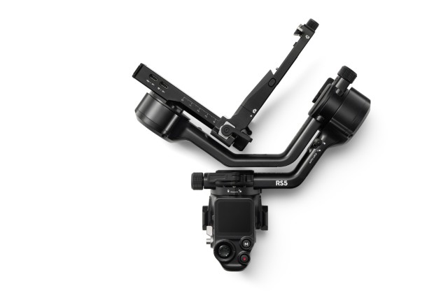 The DJI RS 5 features a touchscreen display for selecting subjects and smooth balancing with rotary dials, all complemented by faster charging and longer battery life.