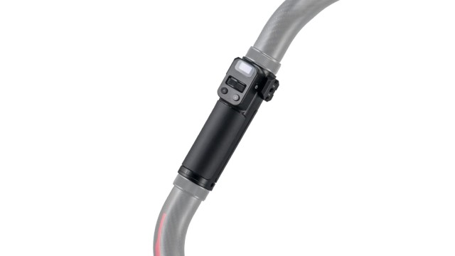 It can be powered by the RS 2 Battery Handle or Battery Plate when connected to the Ring Grip.
