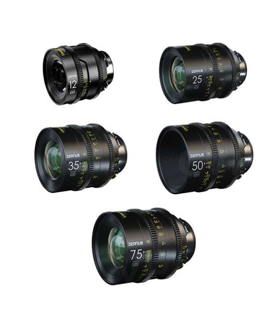 DZO Optics Vespid Prime 5-Lens Kit (12/25/35/50/75mm T2.1-T2.8) PL + EF Mount with Case: Full-frame/Vista Vision cine primes with interchangeable PL/EF mounts, 270° focus throw, 16-blade iris for creamy bokeh, consistent 80mm front/77mm filter, minimal breathing, lightweight aluminum build—perfect for gimbal/drone/handheld cinema.