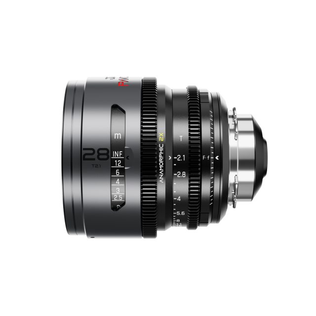 The DZO Pavo is a 28mm T2.1 2x anamorphic prime lens designed for professional filmmaking. Featuring a neutral coating for natural flares and colors, this compact lens delivers a classic cinematic look with its 2x squeeze factor. It is compatible with both PL and EF mounts.
