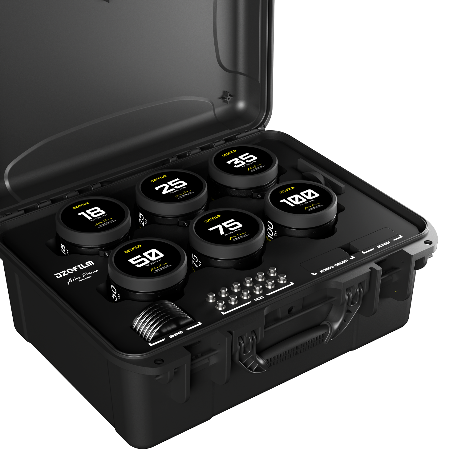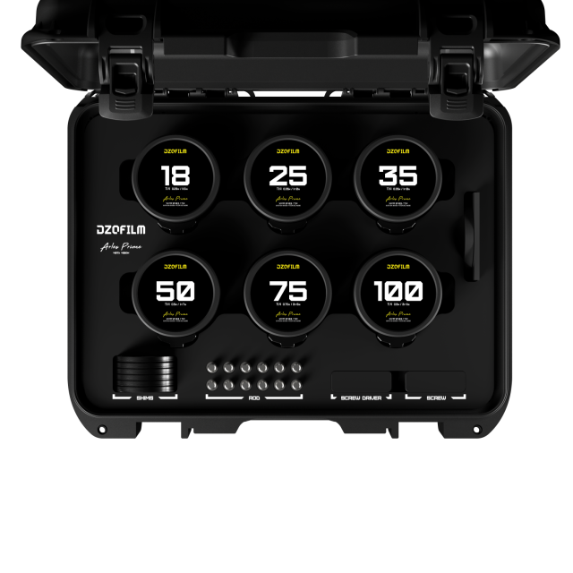 DZOFILM Arles Prime 6pc Metric Lens Kit PL Mount Black Case DZO SAP6MPL. Capture cinematic visions with the DZOFILM Arles Prime 6 lens kit in PL mount and sleek black case. This metric set includes 18mm 25mm 35mm 50mm 75mm and 100mm primes delivering exceptional image quality and consistent performance for professional filmmaking. Elevate your productions with these versatile and reliable cinema lenses.